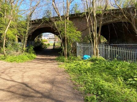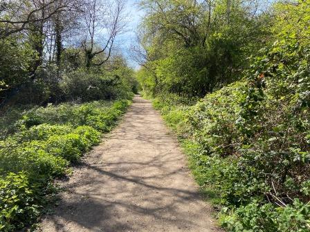 The route now follows the “Railway Walk” for more than half a mile until it reaches Page Street. The path is very quiet and pleasant to walk on.