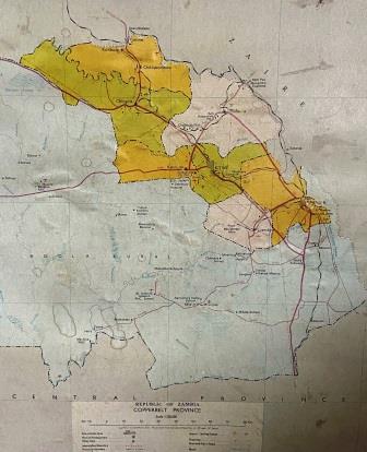 There was a map on a wall in the museum that showed the extent of the Copperbelt in yellow. One of the stewards explained that prospectors used the presence of the “copper flower” (Becium homblei) on the surface as an indicator of where the copper might be found. Large scale extraction started in the early 20th century and the mineral is still Zambia’s largest export. The local word for copper is “mukuba”. The Tazara train I would be taking from Kapiri is named after it.