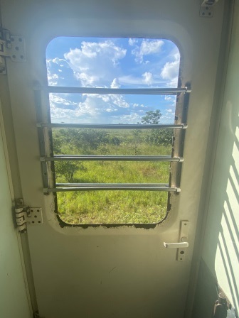 Unlike the Zambezi though, the air conditioning did not seem to be working, so we agreed to open the window. It was also obvious that the compartment had once enjoyed double glazing, but the outer pane had been smashed away and not replaced.