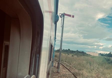 Around 07:00, just before the train pulled into Kalamba, I went to the dining car for breakfast. They were serving bread and omelette with tea, but sadly no coffee. I was sat opposite a woman and we got talking.