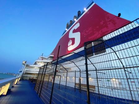 The Stena Britannica at 64,039 gross registered tons is, along with sister, Stena Hollandica, one of the largest super ferries in the world. Launched in 2010, the ship features 2 restaurants, 3 bars and several shops. Apparently there are more than 500 passenger cabins and around 5.5 km of vehicle deck with enough space for 300 trucks.