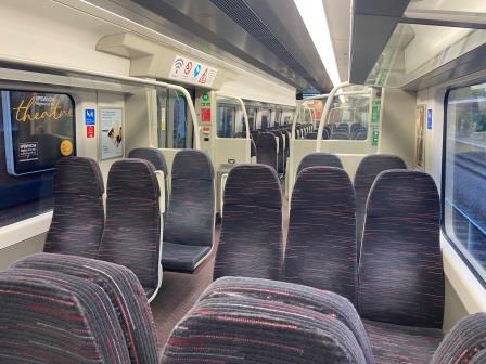 My train today is operated by Greater Anglia and is formed of two five-car Class 720 Aventra electric multiple units, built at Derby and introduced in 2020. Externally they resemble the Class 345 trains being used on the Elizabeth Line but they are fitted with ‘3+2’ seating, ideal for outer suburban runs like this one. The seats are not uncomfortable and even with five minutes to go there are very few passengers on board. I start off with a bay of six to myself.