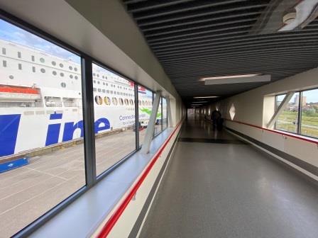 Here, I simply walk up the station stairs, through a set of double doors, put my luggage through the security scanner, have my passport looked at briefly and then receive my paper contactless cabin key. Within ten minutes of arriving at the station I am already climbing up the long covered passageway towards the Stena Britannica.