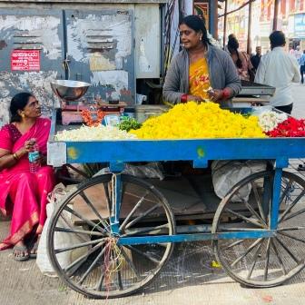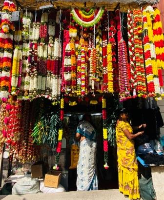 From here Avenue Road stretches through the Chickpete district towards the city’s main market. The shops here were clustered by business type and the first section was dedicated to books and stationery. Further along were textile shops and flower sellers offering jasmine garlands.