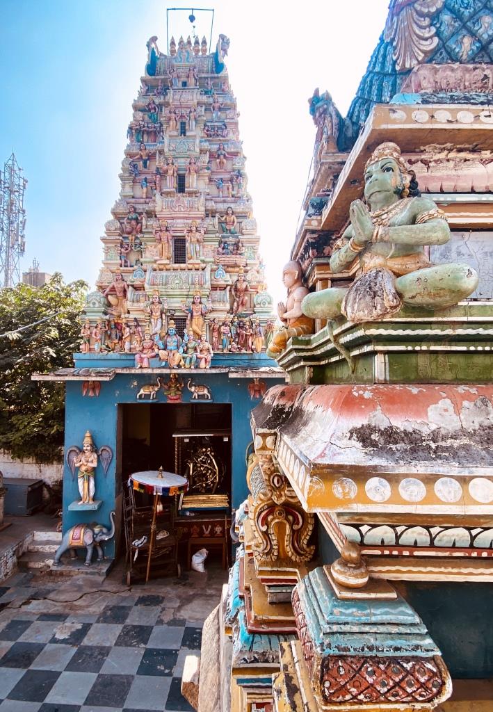 The next morning, I went for a stroll along Avenue Road, one of the busiest shopping streets in the city. I began my walk on the corner of K G Road where a couple of Hindu Temples, Sri Anjaneyaswamy and Ranganathaswamy stood opposite each other.