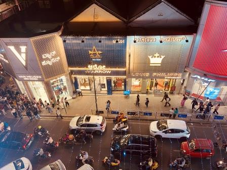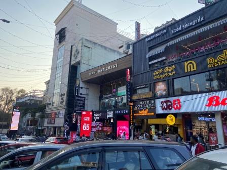 Brigade Road runs south from its junction with MG road and is another of Bengaluru’s energetic commercial streets. It was lined with trendy fashion outlets, sportswear chains, local boutiques and electronic shops.