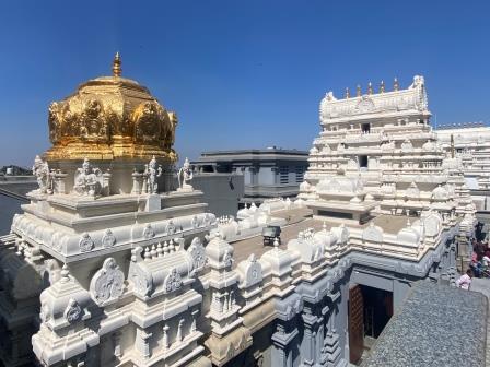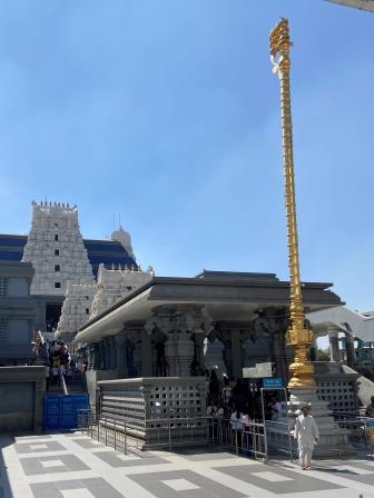 Barefooted, I climbed upwards and then at the top did a complete circle of the temple complex including the vast prayer hall and the restaurant and gift shops in its basement. There were signs everywhere encouraging the faithful. “Always remember Krishna and never forget Krishna” .