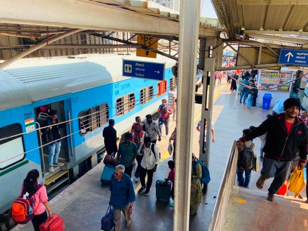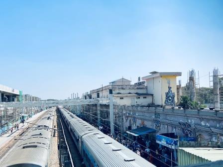 The third lesson was that there was a generous amount of recovery time built into the schedules. #12639 finally turned up at 13:45, I clambered aboard and rode it for the short distance to KSR where, I learned later, I actually arrived on time at 14:00. Those last four kilometres had been timed for 50 minutes. On almost all my subsequent journeys I was delayed enroute but usually arrived on time or early at the terminus.