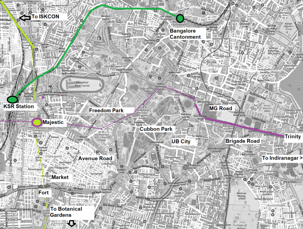 At around 7am, still in no real rush to get to the city centre, I caught the BMTC local airport bus. It cost only 250 Rupees (the Rupee was about 120 to the UK pound) and took around two hours. The bus dropped me at Majestic, Bengaluru’s busiest transport hub, just opposite the Metro station and the main railway station.