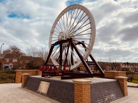 There was a plaque at the foot of the wheel which featured the names of local soldiers, former miners, who fought in both world wars.