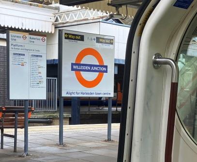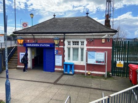 Harlesden (14.68 km) opened on the ‘New Line’ in June 1912 and Bakerloo line trains began to serve it in April 1917. There was a station, Willesden, on the main line close to the site. It opened in 1841 but closed in 1866 when it was replaced by Willesden Junction further south.