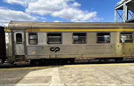 The train itself comprised of two stainless steel coaches of typical Portuguese (Sorefame) origin and two Swiss-built Schindler carriages dating from the late 1940s. None were air conditioned.