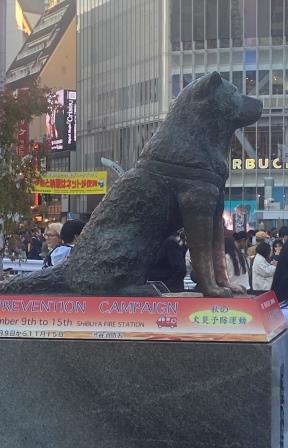 Hachiko (1923-1935) was an Akita dog who was famous for his loyalty. He continued to wait almost every day here outside Shibuya station for nine years after his owner’s death. Hachiko actually became famous during his own lifetime and the first bronze statue of him was unveiled a year before his death. It would have been here at the time of the opening of the chikatetsu. Although it was recycled as part of the war effort in 1945, a replacement was erected in 1948 and remains a popular tourist draw to this day.