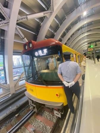With a few stops, it takes me just under an hour to reach Asakusa. The non-stop journey takes around 35 minutes. As at Shibuya, the trains turn around here in the station, although here there are two side platforms.