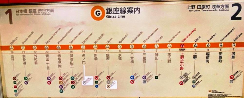 G1 to G19 – Train back to Asakusa (14.3km / 35 minutes)