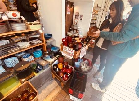 There are places selling pottery and lacquer bowls, others specialising in knives and several selling general items, pots, pans and kitchen implements. Kappabashi is also famous for the plastic models of food items often found in front of restaurants.