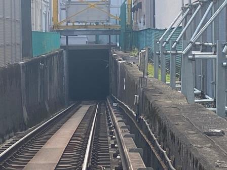 Peering through the gate it is possible to see a few of the trains stabled in the yard. The depot has underground storage as well with a total capacity for 20 of the 40 trains that work on the line.