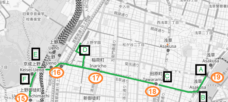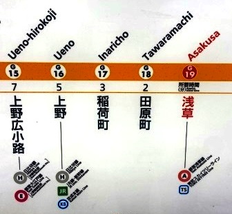 Walk to Ueno, G16 (0.7 km / 2.2 km)