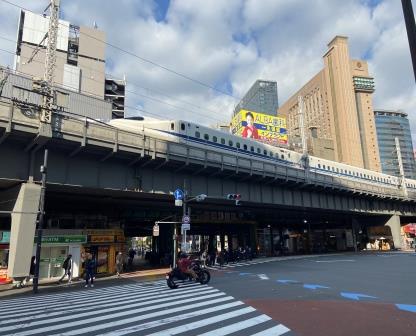 There are a lot of office blocks and company HQs around here; the area is full of places that office workers can go in the evening to eat and drink. I walk on, passing under the Shinkansen tracks, the Tokaido Line, the Keihin Tohoku Line and finally the Yamanote Line.