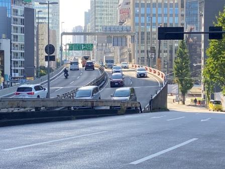 I arrive at yet another flyover and here there are also ramps up to the toll booths of the inner city expressway. Off to my left the elevated road follows Roppongi-dori down towards Roppongi, one of the capital’s most dynamic nightlife destinations, and then it continues on towards Shibuya, my ultimate destination.