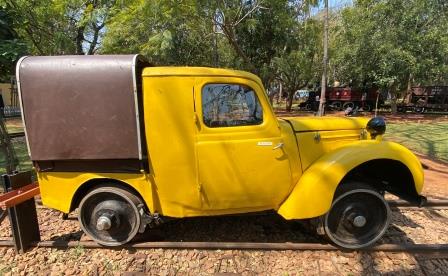 This 1925 model Austin Car, originally built to run on road, was fitted it with rail wheels and carried track inspection officials on the MG network.