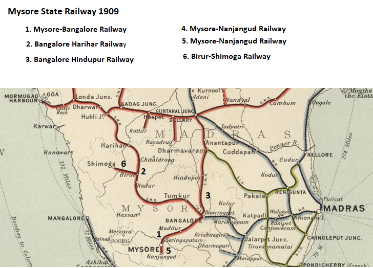 The story of railways in Mysuru (Mysore) began in the late 19th century under the Wadiyar dynasty. The Mysore State Railway opened the 86-mile Mysore-Bangalore metre-gauge line between 1881-1882. It was initially operated by the state before being managed by the Southern Mahratta Railway (SMR). The network expanded quickly with new lines including the Mysore-Nanjangud and Birur-Shimoga routes. By 1900 operations covered all three gauges. The lines eventually became part of the Southern Railway in 1951.
