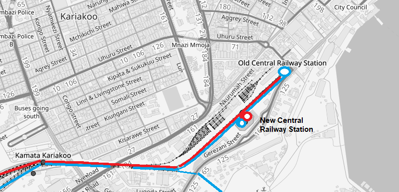 As the MGR line headed out of the city, there were numerous level crossings with busy roads to encounter. Witnessing the operation of these, even for the limited traffic on the MGR, the need to elevate the new SGR tracks through the city became obvious.