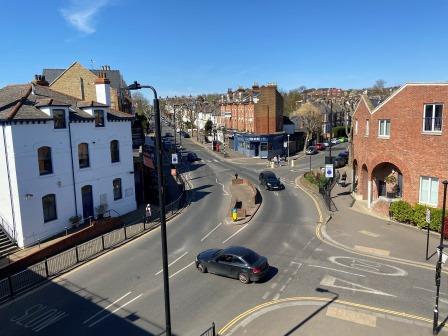 The track bed route ends with a reconstructed overbridge under Muswell Hill. It is worth a short diversion here to the centre of Muswell Hill with its elegant Edwardian retail parade.