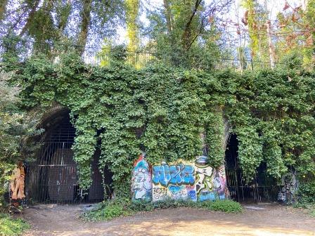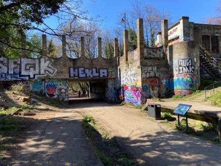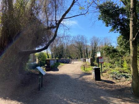 Part of the bridge abutment that would have carried the new tube line is visible to the left as you enter the park.