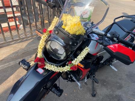 At the temple near the palace, they were holding little ceremonies to bless new vehicles. I watched as a new Suzuki was taken through the process before chatting with the owner of a new motorcycle which was covered in flowers and then blessed.
