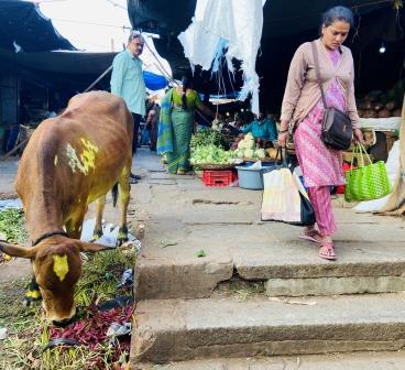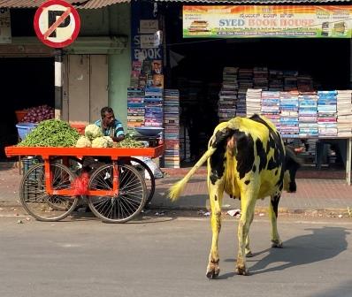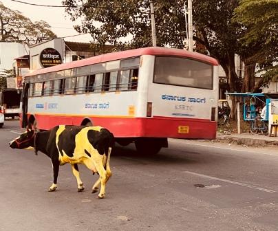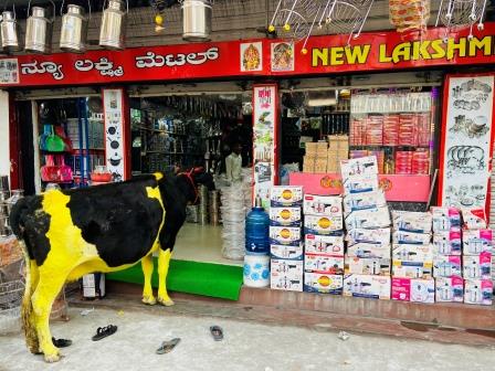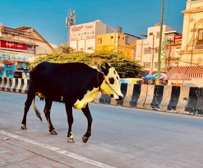 I had noticed a cow that seemed to be dyed yellow from the train window on the way into Mysuru but had dismissed it as an aberration. Then, as I walked around the city I came across more and more of the beasts.