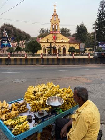 The journey was a mixture of crawling along slowly and relatively fast running. The scenery was pleasant but not particularly dramatic. Out of the window were green fields, rice paddies, sugarcane and the occasional coconut tree. They had obviously built in some serious recovery time into the schedule. I wasn’t surprised that, despite our late departure, we spent a while outside Mysuru and arrived bang on time.
