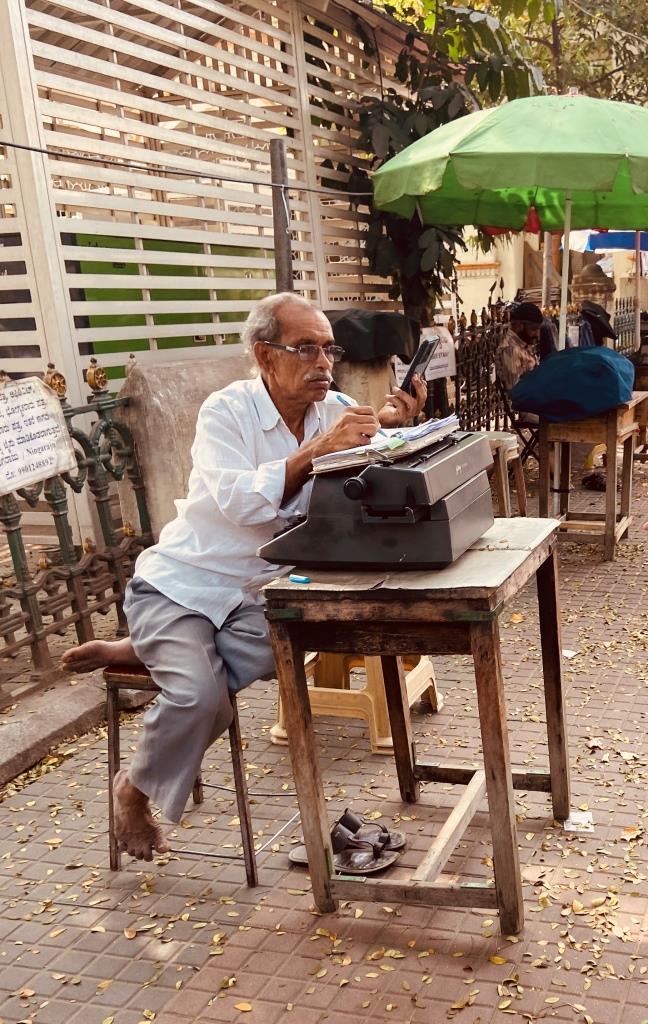 In one area there were street typists. They were sitting with a typewriter ready to provide typing, drafting, and document-writing services for the public.
