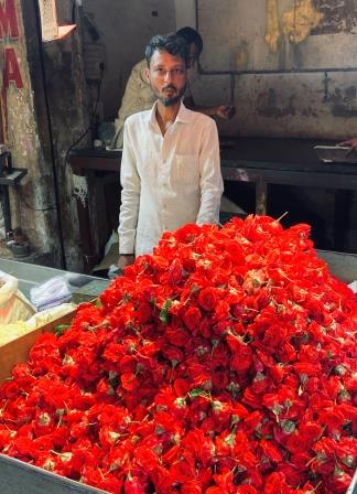 The market is famous for its mounds of jasmine and chrysanthemum, fruits, vegetables, and betel leaves.