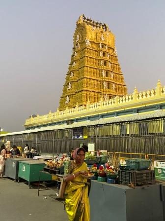 A lot of the visitors were preparing to enter the Chamundeshwari Temple, one of the most revered shrines in Karnataka.