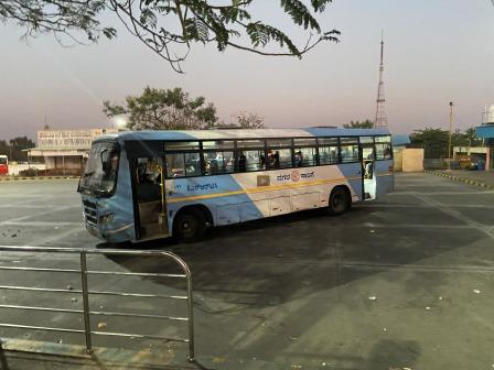 With about twenty minutes to go before departure, our vehicle turned up at gate three. The Ashok Leyland Viking, workhorse of the KST fleet, was in the standard red and grey livery with the words “Point to point express, the journey redefined” on the side. Inside it was fitted with seating for about 45 passengers in a ‘two and three’ layout.