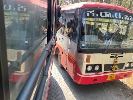 There were a number of services linking Mysuru and Ooty, one of the most scenic routes in South India, and almost all of them took about four hours for the 160km run, some were air-conditioned and relatively luxurious, but many of them ran at odd times of the day. The bus station was a pleasant place to wait. It was pretty busy early in the morning with services departing to all parts of Karnataka, but It was well equipped with food outlets and places to sit. I got myself snacks for breakfast and a loaf of bread for the journey.