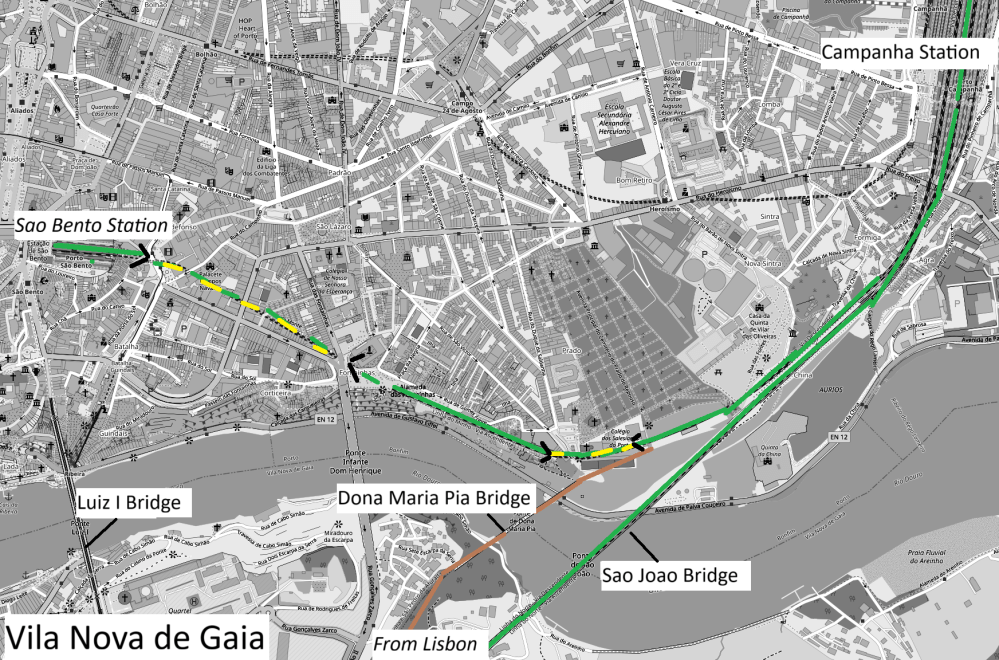 Three main railway lines converge on the city of Porto; the Linha del Norte (the Northern Line) links Porto Campanha station with Lisbon, the Linha do Minho (The Minho Line) goes north from São Bento through Porto Campanha to Valenca on the Spanish border, whilst the Linha do Douro (The Douro Line) branches off just north of Campanha and heads east eventually following the Douro Valley to Pocinho.